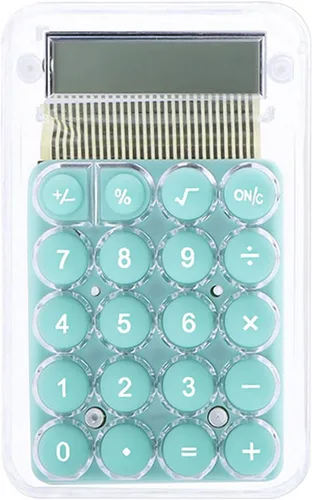 Tamaño: 2.2 x 0.3 x 3.4 in (largo x ancho x alto). Tamaño mini, portátil para llevar o guardar en tu bolsillo. Material: con plástico de alta calidad, la calculadora es más resistente al desgaste, no se decolora durante un uso prolongado. Diseño de botón grande: adopta un bonito diseño de botón grande de caramelo en línea con el uso de hábitos humanos y cómodo al tacto. CARACTERÍSTICAS: Pantalla HD de 8 dígitos, resistente a la suciedad y antideslizante. Apagado automático que ahorra energía y protección del medio ambiente. Muy práctica: las calculadoras están diseñadas para muchas ocasiones: negocios, oficina, hogar, presupuesto básico, escuela y mucho más. Úselo para ayudar a sus finanzas personales o simplemente una sesión de cálculo rápida.