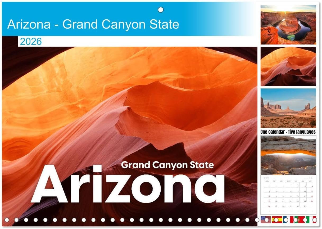 Arizona - Calendario mensual de pared mensual del estado del Gran Cañón 2023 de 11.7 x 16.5 pulgadas (abierto), calendario mensual de Calvendo 2023
