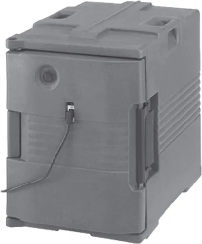 Este transportador de alimentos de carga frontal ultra de 1 compartimento de la serie H está hecho de material de polietileno. Permite el cumplimiento de HACCP manteniendo temperaturas seguras y calientes de los alimentos. Exterior de polietileno resistente que se mantiene fresco al tacto. El aislamiento de espuma gruesa mantiene las temperaturas durante horas, incluso cuando está desenchufado. Este modelo de pila para almacenamiento o transporte en un Camdolly con correa de seguridad. Transportador versátil con capacidad para una amplia variedad de tipos de alimentos y texturas como pasta, pollo frito con hueso y pasteles de doble costra. El cable extraíble se guarda de forma segura para el transporte. Está listado por la Fundación Nacional de Saneamiento (NSF), una organización de pruebas independiente, enumera productos que cumplen con sus criterios de saneamiento y capacidad limpia. El producto utiliza menos energía, ahorra dinero y ayuda a proteger el medio ambiente. Cuenta con asas moldeadas, pestillo de nailon y tapa de ventilación. Voltaje requerido de 110-120 VCA, máximo 2.0 amperios, 230 vatios, 50/60 hercios, tipo de enchufe Nema 5-15P, cable de alimentación de 9 pies de largo. El compartimento puede contener 6 sartenes de tamaño completo de 2-1/2 pulgadas de profundidad o 4 sartenes de tamaño completo de 4 pulgadas de profundidad o 3 sartenes de tamaño completo de 6 pulgadas o 2 sartenes de tamaño completo de 8 pulgadas de profundidad. Disponible en color negro. El compartimento mide 21 pulgadas de profundidad por 13-1/8 pulgadas de ancho por 19-1/8 pulgadas de alto. El exterior mide 26-3/8 pulgadas de profundidad por 18-1/8 pulgadas de ancho por 24-7/9 pulgadas de alto.
