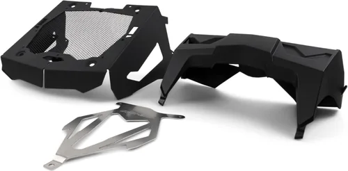 Reubica el radiador a la posición de montaje superior Evita la pérdida de rendimiento de refrigeración en condiciones de barro Utiliza radiador existente Diseñado para facilitar el sangrado y mantenimiento del sistema de refrigeración Radiador no incluido