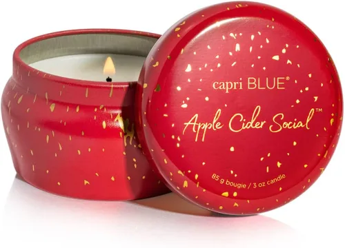 Vela Capri Blue en mini tarro de lata de sidra de manzana (85 g): Nuestros favoritos para rellenar calcetines serán el tema de conversación en todas las fiestas navideñas de este año. ¡Estas latas son increíbles y son el regalo perfecto para cualquier persona en tu lista! Nuestra vela social de sidra de manzana cuenta con un impresionante acabado de lámina metálica y rojo arándano y te dará toda la sensación acogedora de otoño. Tiempo de combustión: hasta 15 horas. Velas perfumadas sociales de sidra de manzana: la dulce golosina de manzana de Capri Blue establece las vibraciones otoñales con un toque de especias. Estas velas navideñas tienen notas de manzana crujiente, canela, pera jugosa con clavo rallado y nuez moscada fresca. Acogedor, cálido y simplemente delicioso! Velas Capri Blue: Nuestras velas de soja 100% naturales son las favoritas de los fanáticos, formuladas con una mezcla de cera de alta calidad y completas con una mecha sin plomo para crear velas duraderas con una combustión limpia. Estas velas de aromaterapia de lujo proporcionarán una experiencia de fragancia como ninguna otra. Cuidado de la vela: permite siempre que la parte superior de las velas sociales de sidra de manzana Capri Blue se licúe completamente antes de soplarlas para evitar que se formen túneles. Mantén la mecha recortada a 1/4 pulgadas y recorta la mecha antes de la primera combustión. (Advertencia: No dejes caer escombros en la cera.) Mientras se queman, nunca coloque sus velas decorativas sobre superficies irregulares o sensibles ni las deje sin supervisión Apaga cuando quede ½" de cera para evitar exponer la parte inferior de la mecha. ¡Reutiliza estos tarros de vela de estaño de maneras nuevas y emocionantes! Sobre nosotros: Inspirado en las tendencias de moda contemporánea, Capri Blue crea nuevos y emocionantes productos para cada temporada. Nuestras velas de cera de soja Capri Blue Glimmer están disponibles en varios frascos de velas y fragancias de hermosos colores. Desde pequeñas velas hasta velas grandes - ¡Cómpralas todas! No puedes equivocarte.