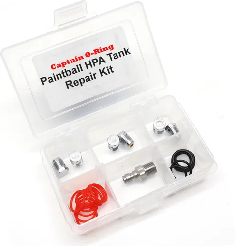 Todas las piezas necesarias para solucionar rápidamente problemas inesperados del tanque de aire de paintball. Incluye (1) boquilla de llenado, (2) disco de ráfaga de 7.5 K, (2) discos de ráfaga de 5 K, (2) discos de ráfaga de 1.8 K, (10) juntas tóricas de tanque y (3) juntas tóricas de regulador a botella de cada tamaño Incluye un año de garantía por Captain O-Ring