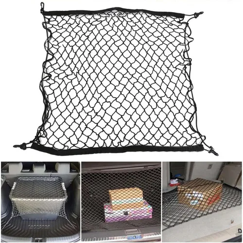 Material: Made of high-quality nylon material, excellent wear resistance, strong flexibility, unique shape, simple style, easy installation. Applicable to all luggage: with 4 buttonholes + 4 hooks, no matter what kind of luggage you have, it can be installed. The middle net is made of nylon, which is very strong and durable. Easy to install: with hook design, not easy to fall. The elastic net has strong extensibility and will not fall due to lack of elasticity. Organize and store sundries: convenient and labor-saving, necessary for travel. The luggage box can be easily tightened so that it does not shake in the car, making driving safer. Universal design, suitable for most cars, please check the shape of your car trunk and make sure it fits before buying