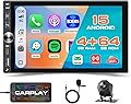 8 Core 4+64 GB 7 pulgadas Android 15 Doble DIN coche estéreo inalámbrico Carplay, pantalla táctil Android Auto receptor de radio de coche con 59UI