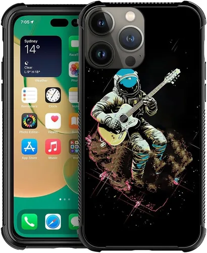 CARLOCA Funda compatible con iPhone 15 Pro Max, funda con patrón de guitarra de astronauta para iPhone 15 Pro Max, ultra protección, a prueba