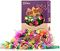 CHIWAVA 24PCS 5" sonajero gato juguetes ratones con plumas arco iris cuerda ratón gatito juguete interactivo colores surtidos