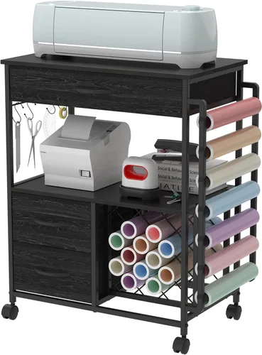 VENNQD Carrito de almacenamiento compatible con máquinas Cricut, soporte para máquina de corte con cajones y soporte de rollo de vinilo, mesa de