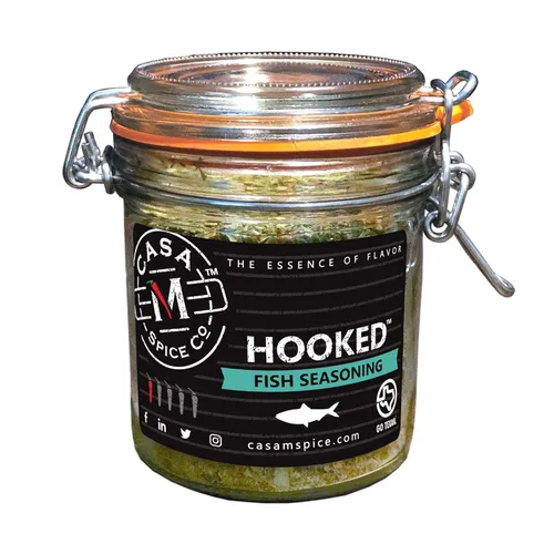 Química en la cocina: con hierba de eneldo, pimienta negra y cebollas verdes añadidas a nuestra fórmula exclusiva de Chain Reaction, nuestro condimento Hooked mejora y resalta los sabores naturales de cualquier plato de marisco. Inicialmente diseñado para salmón y vieiras, este condimento de pescado sabe muy bien en una variedad de pescado, cangrejo, langosta, incluso cosas que van más allá de los mariscos como huevos revueltos y verduras frescas. Ingredientes de alta calidad: fabricado con ingredientes saludables, totalmente naturales, amigables con la dieta cetogénica, nuestro exfoliante de mariscos es muy bajo en sodio, sin gluten, sin MSG, lácteos, soja y nueces, y no contiene productos animales ni rellenos. Todos nuestros condimentos y frotaciones tienen muy poca sal para que puedas agregar tanto sabor como quieras sin salar demasiado. Especia con confianza: ya sea que tu pescado esté ahumado, a la parrilla, al vacío y a la brasa, horneado o asado, Hooked es una gran adición de sabor. No importa cómo prepare su pescado, los brillantes sabores de hierbas en Hooked son el complemento perfecto. ¡Pruébalo en huevos y en salsas y aderezos también! La esencia del sabor Casa M Spice Co es el creador de las mejores especias de sabor audaz, bajas en sodio, totalmente naturales, multigalardonadas especias y masajes secos para asar a la parrilla, cocinar y entretener, fabricados con orgullo en Texas. Creemos que el gran sabor hace una gran comida, y la buena comida hace grandes recuerdos. El gancho está disponible en dos niveles de calor. Nuestra mezcla original tiene el calor de fondo justo para excitar tus papilas gustativas, mientras que nuestra mezcla Uncontrolled duplica el calor para satisfacer al amante del calor en todos nosotros mientras logra el equilibrio perfecto entre calor y sabor