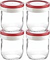 Tribello Tarros Mason de boca ancha de 14 onzas, paquete de 4 tarros de vidrio con tapas herméticas de goma de plástico para preparación de comidas,