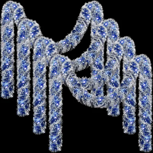 Set de Guirnaldas de Oropel de Navidad: hay 4 piezas de guirnaldas de oropel de Navidad y 4 piezas de cadenas de luces LED, el contenido del paquete es suficiente para decorar la Navidad, creando una atmósfera festiva que impregna cada rincón Material de calidad: la guirnalda de oropel de Navidad con luces LED está hecha de PET de calidad y cables de hierro, fiable y útil, no es fácil de romper o deformar, ligera y reutilizable, nuestras luces de cadena pueden parpadear y crear un ambiente festivo para ti; ten en cuenta que nuestro oropel de Navidad y las luces LED están separadas, por lo que puedes hacerlo tú mismo Tamaño apropiado: las decoraciones de guirnalda de escarcha miden aproximadamente 32.8 pies de largo, y las cadenas LED también miden aproximadamente 32.8 pies de largo, una longitud adecuada es suficiente para su uso, su longitud asegura una cobertura suficiente; Recordatorio cálido: "Para mayor seguridad y mayor vida útil, siempre despliegue completamente las bombillas antes de usarlas; Agruparlas puede causar sobrecalentamiento y peligros Colores atractivos: el color brillante de la guirnalda de decoraciones de Navidad con luces refleja la luz para obtener más brillantez; son decoraciones ideales para tu árbol de Navidad y proporcionan un color y ambiente atractivos para tu árbol de Navidad; en la oscuridad, las luces pueden hacer que la guirnalda de oropel brille Ocasiones de amplia aplicación: las guirnaldas de escarcha para Navidad son adecuadas para Navidad o cualquier festividad y ocasión, como fiestas, bodas, festivales, decoración del hogar, jardines, árboles de Navidad, paredes, setos, puertas, ventanas, porches, mesas y más; Por favor, tenga en cuenta que al usar el producto al aire libre, no lo deje empaparse ni lo exponga a la lluvia