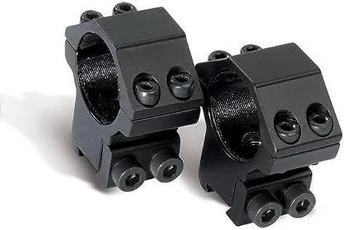 Alto perfil: se adapta a objetivos de hasta 2.205 in Se adapta a telescopios de tubo de 1 pulgada Incluye 2 anillos: construcción de aluminio Soporte de cola de paloma: se adapta a receptores ranurados 3/8 Completo con pasador de parada para retroceso pesado