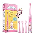 Made by Dentists Cepillo de dientes eléctrico para niños, cepillo de dientes vibratorio recargable con temporizador, incluye 6 cabezales de