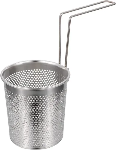 Cesta redonda de acero inoxidable para freír chips franceses de malla de alambre para freír fideos con asa, herramienta de cocción de patatas para