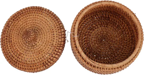 ratán Cesta de almacenamiento de huevos, cesta redonda de mimbre con tapa, cesta de frutas, cuencos de ratán tejido de ratán, organizador de escritorio para oficina en casa GARLIC KEEPER - Cajas redondas de ratán con tapa, tejida a mano, bandeja de mimbre, cesta de almacenamiento de comida para pícnic, pan, mesa de almacenamiento Cestas de almacenamiento de mimbre Cajas de ratán con tapa tejida a mano Multi- Bandeja de mimbre Cesta de pan Bandeja de mimbre para alimentos, bandeja de mimbre para servir frutas, pan tejido redondo, cesta de almacenamiento de verduras, bandeja de aperitivos para encimera de cocina SUNDRIES - Cesta de almacenamiento tejida para huevos con tapa, cesta de recolección de huevos, soporte para ajos, cebolla, cesta de almacenamiento de cebolla, cesta de ratán para frutas y verduras para cocina