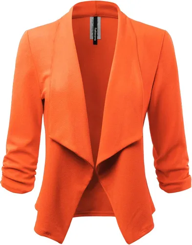 Chaqueta Blazer Abierta de Tela Elástica con Mangas 34 Fruncidas para Mujer (Hecha en EE.UU.)