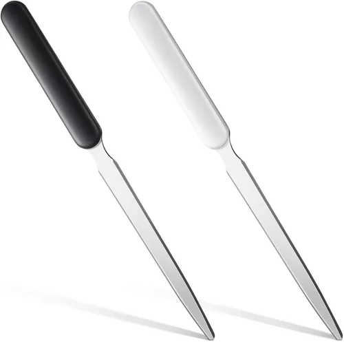Material fiable: el abridor de sobres está hecho de material de acero inoxidable, es seguro y no te lastima fácilmente cuando se usa; el cuchillo abridor de sobres es resistente e impermeable, resistente al óxido y ligero, y se puede aplicar de forma segura en tu vida diaria Tamaño adecuado: el tamaño de cada abrecartas de acero inoxidable es de aproximadamente 7.5 x 0.6 pulgadas, un tamaño adecuado para que lo sostengas en tus manos; y el mango antideslizante mejora la fuerza de fricción para que el cuchillo sobre no se caiga de tus manos fácilmente Contenido del paquete: recibirás 2 hojas de abrelato, incluyendo 2 colores blanco y negro; cantidad suficiente y 2 colores para elegir, puede satisfacer tus necesidades diarias de uso y reemplazo Amplia gama de aplicaciones: estos cuchillos de oficina no solo se pueden aplicar para abrir las letras, sino que también son adecuados para abrir expresos, paquetes, cartones, bolsas de embalaje, cajas y más, herramientas prácticas para hogares y oficinas Precauciones: ten cuidado de utilizar la parte puntiaguda del abridor de cuchillos contra personas; la parte del cuchillo es puntiaguda, y debe mantenerse alejada de niños menores de 3 años, se necesita supervisión de un adulto.