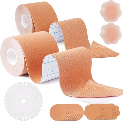 Cinta adhesiva para pechos, cinta adhesiva para levantamiento de senos, kit de 60 cintas de mama con 2 rollos de cinta de levantamiento de senos (2