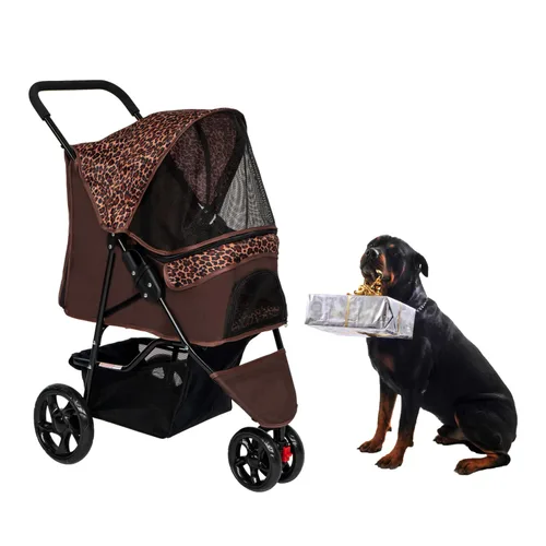 Cochecito para perros y gatos, jaula de 3 ruedas con cubierta climática, transportador para mascotas, fácil de plegar