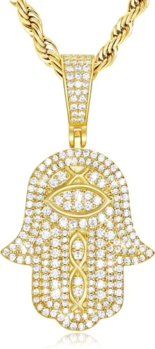 Collar con colgante de mano Hamsa chapado en oro real de 18 quilates o blanco con dije de mano de Hamsa, protección de buena suerte, cadena para