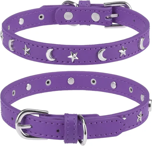 Collar de cuero para perros pequeños y medianos, collar ajustable con remache de estrella y luna con hebilla de metal inoxidable y dijes, collares