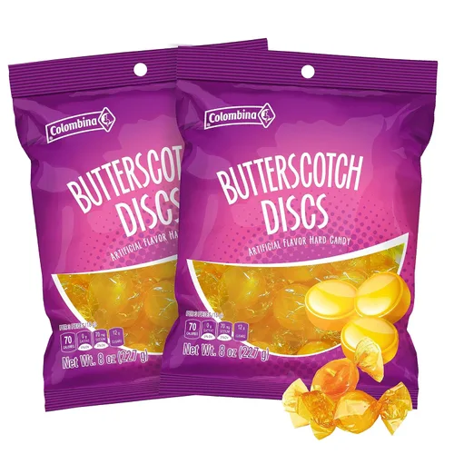 DISCOS DE CARAMELO BUTTERSCOTCH COLOMBINA - Disfruta del sabor clásico del butterscotch con los Discos de Caramelo Butterscotch de Colombina, el dulce perfecto para cualquier ocasión. Nuestro caramelo duro de sabor artificial viene en un paquete variado de dulces a granel con golosinas envueltas individualmente que son perfectas para Pascua, piñatas y rellenos de cajas de dulces. Estos aperitivos antiguos son un favorito atemporal, perfectos para cualquier persona que ama el sabor clásico del caramelo de mantequilla. ENVUELTOS INDIVIDUALMENTE – Cada paquete contiene 38 unidades de deliciosos discos de butterscotch, con un caramelo por paquete. Los dulces están envueltos individualmente, lo que los hace fáciles de compartir y perfectos para bocadillos sobre la marcha. Perfecto para llenar tu tazón de chocolates - Nuestros caramelos duros de estilo antiguo son una buena opción para las mesas de postres, gracias a su color y sabor clásico a butterscotch. Estos caramelos a granel son ideales para restaurantes, negocios y consultorios médicos Perfecto para compartir: experimenta la combinación perfecta de sabor dulce y picante con nuestro delicioso caramelo duro con sabor a canela. Perfecto para cualquier ocasión, cada paquete ofrece 8 onzas de dulces que puedes disfrutar o compartir entre amigos y familiares. Ya sea que estés buscando abastecerte de dulces para una fiesta o simplemente quieras disfrutar de un delicioso regalo, los discos Colombina Butterscotch son la elección perfecta INGREDIENTES DE ALTA CALIDAD - Nos enorgullecemos de ofrecer un producto que no tiene ningún olor o sabor objetable que no esté relacionado con la naturaleza del producto. Nuestro paquete de discos Butterscotch también está libre de cualquier componente inorgánico u orgánico que no sea el descrito en la especificación del producto. ¡Disfruta de nuestro sabor tradicional de caramelo de mantequilla en cada bocado para una experiencia de bocadillos deliciosa! Seguridad alimentaria y buenas prácticas de fabricación: nuestra mezcla de dulces está fabricada, empaquetada, etiquetada y entregada de acuerdo con todas las regulaciones gubernamentales aplicables, para garantizar que obtengas el producto de la mejor calidad. Son el aperitivo clásico perfecto para cualquiera que ame el sabor tradicional del caramelo de mantequilla. Satisface tu gusto por lo dulce con nuestros deliciosos discos Colombina Butterscotch