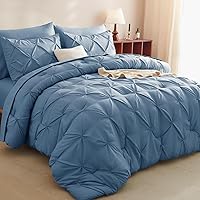 CozyLux - Juego de edredón tamaño Queen grisáceo azul, juego de 7 piezas plisado en una bolsa, edredón premium azul tamaño Queen, juego de ropa de