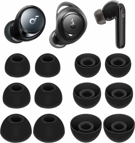 Compatibilidad: compatible con Soundcore Space A40, compatible con Soundcore Life A1, compatible con Soundcore P3, compatible con Soundcore P2 Mini, compatible con Soundcore Liberty Air 2, compatible con Soundcore Life Series y Liberty Series In-ear Earbuds. Material: hecho de silicona suave y flexible de alta calidad, proporciona más aislamiento del ruido, estabilidad en la oreja y una comodidad duradera. Y son lavables al agua, duraderos, flexibles, extraíbles y reemplazables. Buena calidad de sonido: estas almohadillas pueden ofrecer un buen sellado para reducir parte del ruido exterior y te permiten centrarte en tu audio, proporcionar una mejor experiencia de escucha de sonido. 3 opciones de tamaño: pequeño, mediano y grande, 3 tamaños diferentes, cumple cómodamente con la forma de tu oreja individual. Cabe en el estuche de carga, no es necesario quitar las puntas cuando pones los auriculares en el estuche de carga. Caja de almacenamiento: equipada con una caja de almacenamiento para almacenar 6 pares de almohadillas (S/M/L 3 tamaños, 2 pares por tamaño), solo almohadillas para las orejas, auriculares y estuche de carga no incluidos.