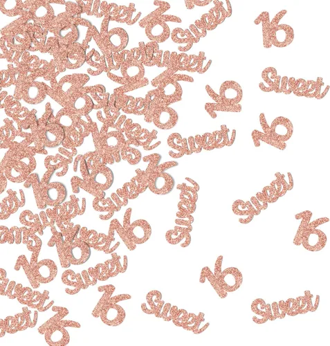 [ Lo que obtendrás] Confeti Sweet 16 de oro rosa [Detalles del producto] 🎉Material: papel con purpurina de doble cara. 🎉Tamaño: 1.1 x 0.7 pulgadas. 🎉Color: purpurina de oro rosa. 🎉Adecuado para cumpleaños, boda, decoración de fiesta de aniversario, etc. [Notas del producto] ¡El confeti no es comestible! ¡No te pongas este producto en la boca! El confeti está hecho de papel, por lo que no es lavable. Si recibes un producto dañado, ponte en contacto con nosotros a tiempo para que lo reemplaces.