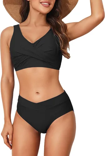 Conjunto de bikini de cintura alta para mujer, traje de baño de dos piezas con lazo en la espalda