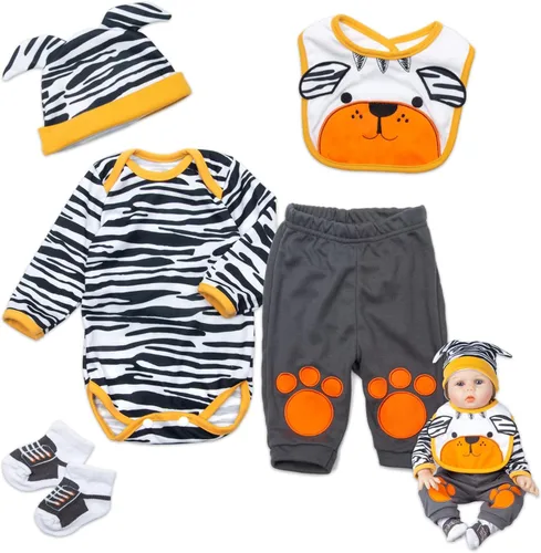 Este bonito traje de tigre se adapta perfectamente a tus muñecas de bebé recién nacido de 20 a 22 pulgadas. Es una buena opción como regalo o colección. Juego de ropa de muñeca recién nacida hecha a mano, 100% algodón y seguro para tu bebé. Se permite lavar a mano. Como se muestra en la imagen, el babero naranja tiene un estampado de tigre, el mameluco está estampado con rayas de tigre negro, huellas de tigre naranja en sus pantalones. Contenido del paquete: 1 babero, 1 mameluco, 1 pantalón, 1 calcetín. (el paquete no incluye muñecas y juguetes) Muchas muñecas Reborn y conjuntos de ropa a juego en nuestra tienda para elegir.