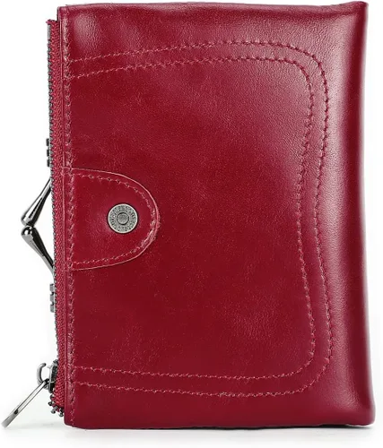 CONTACTS Cartera de cuero con cierre de beso para mujer, con cremallera, bolsillo para monedas, vintage, plegable, Rfid, tarjetero, Rojo -, Chic