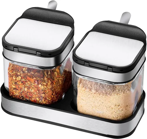 Material grueso: el juego de 2 recipientes para azúcar y sal está hecho de vidrio sin plomo y se combina con cucharas de acero inoxidable 304. La base y la cubierta están hechas de plástico PP, y la boca de la botella está diseñada con gran diámetro, lo que es conveniente para tomar y limpiar. La mejor opción para proteger la salud familiar. Tamaño del tazón de azúcar: el juego de tanques de almacenamiento incluye 3 recipientes del mismo tamaño (2.95 x 3.15 x 4.14 pulgadas), 3 cucharas y 1 base de plástico PP. Cada frasco tiene una capacidad de 10 oz/8.5 fl oz. Diseño humanizado, la tapa está integrada con el cuerpo de la botella, la tapa se puede girar libremente y se puede abrir en un segundo, por lo que no teme el fuego alto. Diseño especial: el recipiente de vidrio transparente te permite ver el contenido con claridad. La tapa está integrada con el cuerpo de la botella para mantener tus especias frescas, a prueba de polvo y humedad, y evitar que las especias se ensucien por el polvo u otras cosas sucias. El estilo de diseño único de combinar acero inoxidable y vidrio puede impregnar arte elegante en cada rincón de la vida. Contenedor multiusos: cada recipiente de condimentos puede contener hasta 8.6 fl oz (10 onzas). Se puede utilizar para almacenar sal, pimienta, salsa, azúcar, vainilla seca, cobertura de helado, frutas, café, azúcar o verduras y otros condimentos. Este es un condimento perfecto para familias, cafeterías, cafeterías, etc., y más para satisfacer tus diversos propósitos. Regalo perfecto: el tarro de condimentos complementará todas las decoraciones del hogar, y es un regalo único y perfecto para inauguración de la casa, aniversario, jubilación, cumpleaños o vacaciones