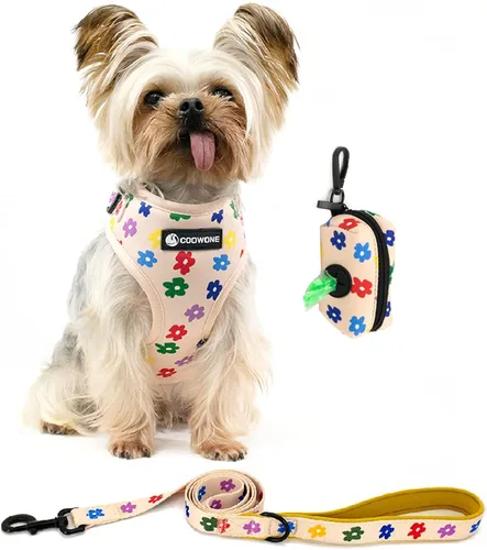 Juego de arnés para perro: disponible en un juego a juego, obtendrás 1 arnés para perro, 1 correa para perro y 1 dispensador de bolsa de excremento, arnés suave para perro con neopreno de secado rápido con interior de malla transpirable para ventilación de la piel y comodidad de las mascotas. Collar ajustable y correa de pecho: puedes ajustar el arnés para perro alrededor del cuello y el pecho para adaptarse al tamaño de tu mascota, puedes fijar la correa para perro para controlar a la mascota mientras caminas, corres, compras y entrenas, puedes disfrutar de libertad y seguridad. A prueba de escape: el arnés para cachorros está diseñado con un cierre de hebilla duradero que es fácil de poner y quitar y anillo en D de acero inoxidable, no es fácil de romper, asegúrate de que no se caiga accidentalmente. Correa para perro de 5 pies: la correa para perro está hecha de la correa más fuerte de 3/4 pulgadas y un gancho de clip de metal duradero de 360°, mango acolchado suave que puede proteger tus manos de quemaduras por cuerda. Ideal para entrenar, caminar o correr. Arnés para cachorro: al elegir una talla, determina el busto del perro midiendo la parte más ancha del pecho del perro (si estás entre tallas, elige la talla más grande y asegúrate de dejar 1 pulgada)