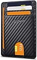 Buffway - Cartera delgada minimalista de cuero con protección RFID para hombre y mujer, Negro), BW-WL-CF-BL