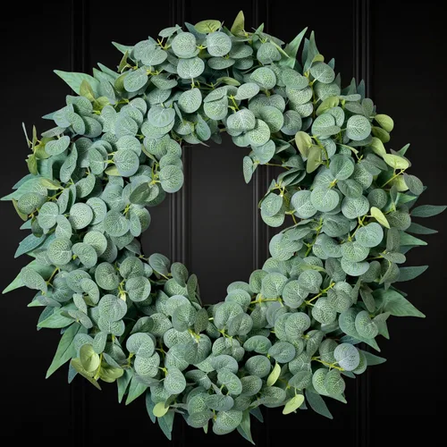 Coronas de eucalipto de 20 pulgadas para puerta delantera, porche, corona de eucalipto de seda para decoración de granja, vegetación minimalista