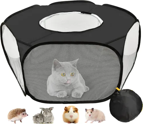 Corralito de juegos para conejillos de indias, impermeable, para animales pequeños, con cubierta antiescape, portátil, transpirable, para interiores