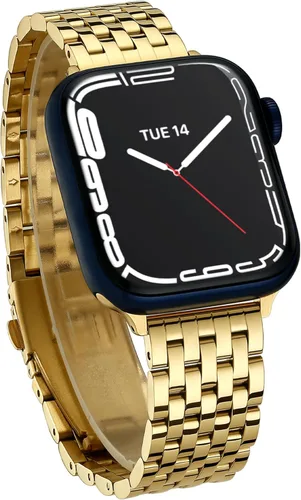 Correas de reloj clásicas de acero inoxidable doradas compatibles con Apple Watch para mujer. Se adapta a las series 11/10 (1.65 pulgadas), 9/8/7 (1.61 pulgadas), 6/5/4/SE3/SE2/SE (1.575 pulgadas) y 3/2/1 (1.496 pulgadas). Se adapta a muñecas de 120–195 mm (4,7" a 7,7"). Cada correa de reloj viene con un extractor de eslabones y un manual de instrucciones para un ajuste fácil. Para los primeros usuarios de bandas de acero inoxidable, se requiere ajuste de tamaño antes de usarlas. Desde el trabajo diario hasta salidas nocturnas, esta correa de reloj transita sin esfuerzo entre momentos casuales y eventos formales. Ligero y cómodo para llevar todo el día. Además, la pulsera de acero inoxidable incorpora el cierre de botón para que sea fácil de asegurar y quitar: una elección atemporal para las mujeres trabajadoras modernas. Correa de acero inoxidable femenina compatible con Apple Watch para mujeres. Compatible con iWatch de 42 mm (Series 11/10), 41 mm, 40 mm y 38 mm.