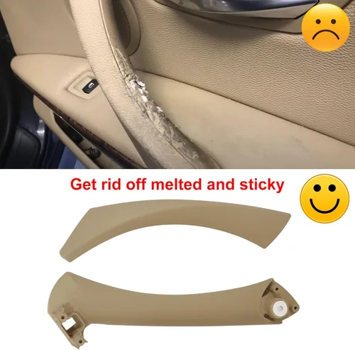 No se volverá pegajoso como los originales. No más necesidad de lidiar con el desorden pegajoso y asqueroso en las asas de agarre. El ajuste original reemplaza directamente a este nuevo juego de manijas de puerta interior. Refresca y mejora la manija original de la puerta interior. Contra lo pegajoso, Antimanchas, Antiarañazos, Más duradero, Compatibilidad perfecta. El paquete incluye: manija de puerta interior derecha; sujetadores; herramientas de extracción de panel de clip de puerta automática. Reemplazo para BMW E90 E91 Serie 3 323 325 328 330 335 2005-2012. Sustituye al número de pieza: 51419150340, 51417230854