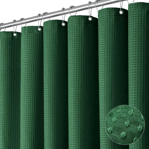 Cortina de ducha de tela Dynamene verde oscuro - Cortinas de baño de tela de nido de abeja texturizadas resistentes, juego de cortinas de baño de
