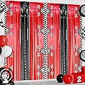 2 cortinas de fondo de aluminio con flecos de automóvil de carreras, decoración de fiesta de cumpleaños de coche de carreras, fondo de fotos negro,