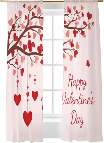 Cortinas traslúcidas para el día de San Valentín de 84 pulgadas de largo, para el Día de San Valentín, color rojo, romántico, color rosa