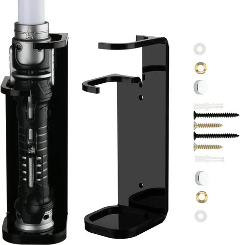 Pantalla perfecta: este soporte de pared para sable de luz te permite mostrar tus sables de luz perfectamente sin ocultar detalles, haciendo que tu sable de luz se vea hermoso y genial cuando se ilumine, puedes quitar fácilmente el sable de luz del soporte cuando lo necesites. Estable y fiable: el soporte de sable de luz viene con bases acrílicas y kit completo de herramientas que sujetará tu sable de forma segura y hermosa. El material duradero proporciona un soporte estable para un uso duradero. Diseño innovador: este soporte de sable de luz de una sola pieza cuenta con un innovador diseño escalonado que hace que el sable de luz sea fácil de poner y quitar, el espacio generoso lo hace compatible con la mayoría de los sables de luz. Fácil de instalar: el paquete viene con un kit completo de instalación e instrucciones (idioma español no garantizado), monta el estante de sables de luz de forma segura en la pared en solo dos pasos, incluye tapas de tornillos para ocultar tus tornillos. Nota: Se requiere perforación. Compatibilidad: se adapta a empuñaduras y hojas de menos de 1.97 pulgadas de ancho, comprueba si el tamaño es adecuado para tu sable de luz antes de comprar. (Atención: solo soporte de pared, sable de luz no está incluido)