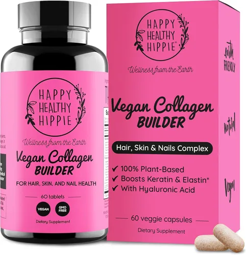 [Refuerzo de colágeno vegano para cabello, piel y uñas] La fórmula a base de plantas de Happy Healthy Hippie apoya la capacidad natural de tu cuerpo para producir colágeno, queratina y elastina, los tres bloques de construcción de piel brillante, uñas fuertes y cabello saludable. [35 ingredientes botánicos, hierbas + alimentos integrales en cada tableta] Si bien la mayoría de los suplementos de colágeno vegano dependen de un puñado de péptidos vegetales, esta fórmula combina 35 hierbas puras, frutas y verduras, incluyendo ácido hialurónico para la hidratación de la piel, Gotu Kola para apoyo del tejido conectivo y sílice de cola de caballo para integridad estructural. [Colágeno, queratina + apoyo de elastina en una fórmula] La mayoría de los suplementos de colágeno vegano se detienen en el soporte de colágeno, este va más allá. Los botánicos que estimulan la belleza, como Knotweed japonés y Amla Fruit, ayudan a nutrir la elastina y la queratina de la que confían tu piel, cabello y uñas para mayor resistencia y luminosidad juvenil. Más allá de la belleza: huesos, cartílago + tejido conectivo: la L-lisina, un aminoácido esencial, funciona junto con la vitamina A y la sílice de origen vegetal para apoyar huesos, cartílagos, tendones y tejido conectivo saludables, nutriendo toda tu estructura, no solo la superficie. [Dos tabletas fáciles al día, sin polvos, sin ensuciar] Olvídate de los polvos de colágeno aglutinantes y calizos. Dos tabletas simples ofrecen tu porción diaria completa de colágeno vegano: fácil de tragar, fácil de meter en tu bolsa y lo suficientemente consistente como para apoyar los resultados con el uso diario. Alimentos integrales ricos en vitamina C para la síntesis de colágeno: la fruta Amla, la guayaba, el limón y la cereza ofrecen vitamina C de origen natural, un nutriente crítico que tu cuerpo necesita para sintetizar colágeno, junto con antioxidantes de arándano, mangostán, arándano y mora para ayudar a defenderse contra el daño de los radicales libres. Verdes densos en nutrientes + superalimentos incluidos: las semillas de hoja de moringa, espinacas, col rizada, brócoli, zanahoria y calabaza aportan una base fundamental para la nutrición de las plantas, apoyando las vías de producción de colágeno de tu cuerpo desde dentro, como la naturaleza lo pretendía. Alternativa vegetariana al colágeno: completamente libre de animales: diseñada para veganos y vegetarianos que quieren apoyo de colágeno sin péptidos derivados de animales, esta fórmula de tableta es totalmente a base de plantas, sin OMG y fabricada con intencionalidad para mujeres que se preocupan por lo que entra en su ritual de bienestar. Ácido hialurónico para hidratación profunda de la piel + resplandor: el ácido hialurónico, conocido por su capacidad para apoyar la humedad de la piel y el aspecto de la piel regordeta y húmeda, se combina con gynostemma y té blanco para ayudar a tu cutis a mantener su brillo natural desde dentro. Fórmula limpia a base de plantas con la que puedes sentirte bien: cada tableta no contiene OMG, completamente libre de ingredientes derivados de animales y elaborada sin rellenos artificiales, un suplemento de colágeno vegano hecho con la misma intencionalidad que aportas al resto de tu rutina de bienestar.