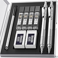 Nicpro - Juego de 2 portaminas de 0.5 mm y 0.7 mm con estuche, juego de lápices metálicos MP1000 para artistas con 4 tubos de recambios de mina HB,