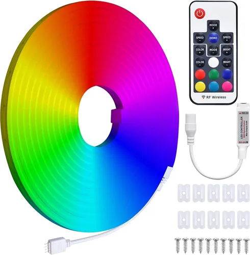 Tira de luces LED de neón RGB, cuerda de luces que cambian de color de 16.4 pies con control remoto IP65, impermeable, luces de neón flexibles