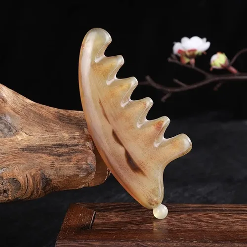 Exfoliantes y tratamientos corporales Cuerno Gua Sha peine cuero cabelludo masaje meridiano raspado terapia de acupuntura anticelulitis pérdida de cabello relajación Guasha herramienta de masaje Tamaño: Acerca de 4.7*1.8 in Cantidad: 1pcs al azar Consejos: 1. No remoje el peine de cuerno en agua durante mucho tiempo, enjuague con agua fría limpia después de su uso y seque rápidamente con un paño suave. 2. El peine de cuerno no puede exponerse al aire seco durante mucho tiempo, tampoco puede soplar en el calentador, porque el ingrediente principal de los cuernos es la proteína, contiene una cierta cantidad de humedad, por lo que cuando el exterior está seco, la humedad se perderá y el peine de cuerno se agrietará fácilmente. 3. Después de su uso, es mejor utilizar aceite o aceite esencial o crema de manos para sellar y almacenar