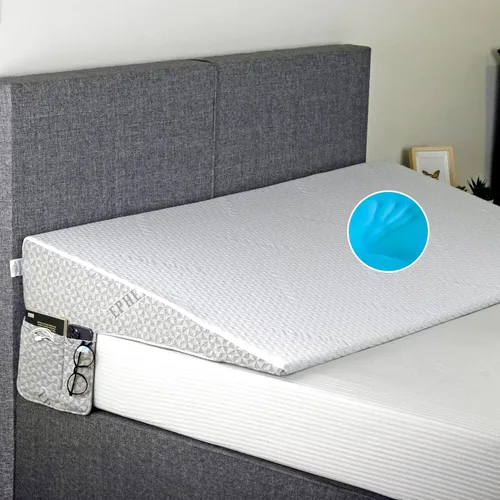 Eleva tu comodidad para dormir: nuestra cubierta de cuña de elevador de cama premium está diseñada para proporcionar un apoyo específico para tus hombros, cuello y columna vertebral, mientras que su inclinación ayuda a aliviar los síntomas del reflujo ácido. Despierta sintiéndote renovado y revitalizado cada mañana Diseño innovador para una funcionalidad mejorada: con una lujosa capa superior de espuma viscoelástica y una base de espuma de alta calidad de apoyo, nuestro elevador de colchón Queen ofrece la mezcla perfecta de comodidad y funcionalidad, elevando tu experiencia de sueño Estabilidad y apoyo durante toda la noche: con una parte inferior antideslizante y prácticos bolsillos en cada lado, nuestros elevadores de cama de reflujo ácido se mantienen firmemente en su lugar, proporcionando apoyo para hombros y cuello mientras mejoran la salud respiratoria CONVENIENTE Y ECOLÓGICO: Diseñado pensando en tu comodidad, nuestra cuña de colchón Queen viene empaquetada al vacío para facilitar el transporte y reducir las emisiones de carbono. Simplemente desempaca, deja que se expanda y transforma tu cama en un santuario de relajación Hipoalergénica y agradable a la piel: fabricada con tela suave de tres capas hipoalergénica, lavable a máquina, nuestra cuña de cama Queen es perfecta para aquellos con piel sensible o alergias. Experimenta la máxima comodidad para dormir sin preocuparte por irritaciones o molestias