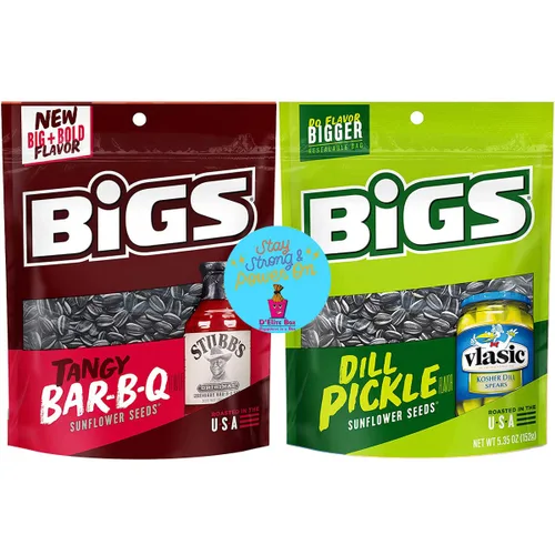 D'Elite Box Paquete variado de semillas de girasol, paquete variado de 2 sabores, pepinillo de eneldo y barbacoa picante, bolsas de 5.35 onzas cada