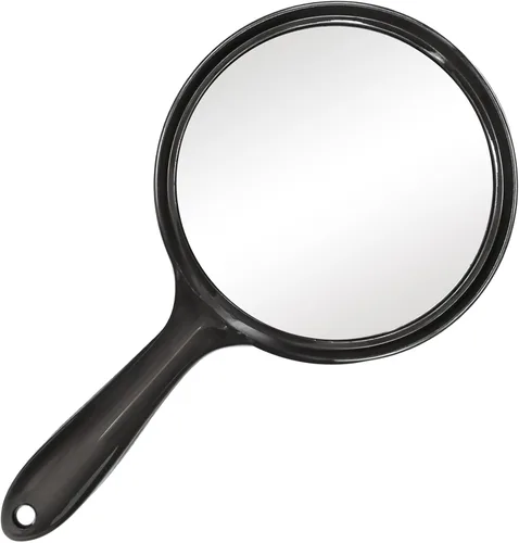 Diseño minimalista: el marco de cristal transparente es simple pero sobresaliente. Una pieza hermosa y práctica para tu escritorio Tamaño perfecto: espejo de mano de gran tamaño con un tamaño de visualización decente de 4.8 pulgadas de diámetro. Fácil de guardar en tu cajón de tocador y bolsa de maquillaje. Ligero: fabricado con plástico ABS de calidad y vidrio grueso de 4 capas. Es cómodo de sostener con una mano y aplicar maquillaje con la otra al mismo tiempo. Para trabajos de primer plano: doble cara con aumento 1X y 2X tanto para vista normal de cara completa como vista de cerca. Perfecto para aplicar máscara, lápiz labial y pinzas de cejas Para uso personal y en salón: es conveniente mantener uno a un lado para que tus clientes revisen su cara o cabello en tu salón, spa o estudio