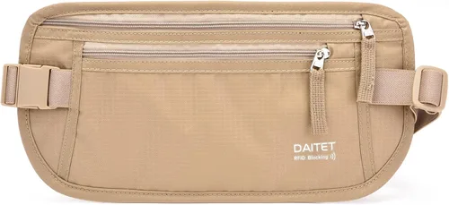 DAITET Cinturón de dinero, soporte para pasaporte, cartera de viaje oculta segura con bloqueo RFID, riñonera encubierta, Beige, Rfid Blocking & Belt
